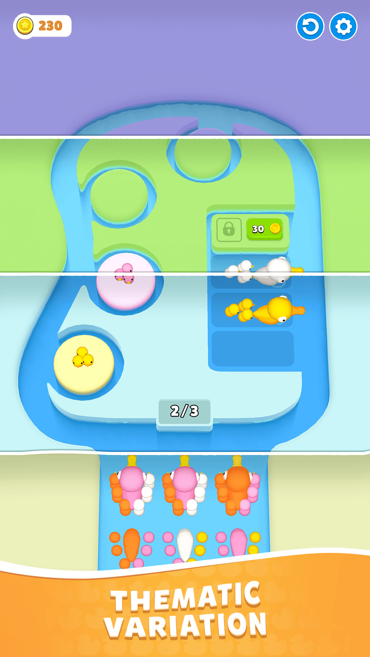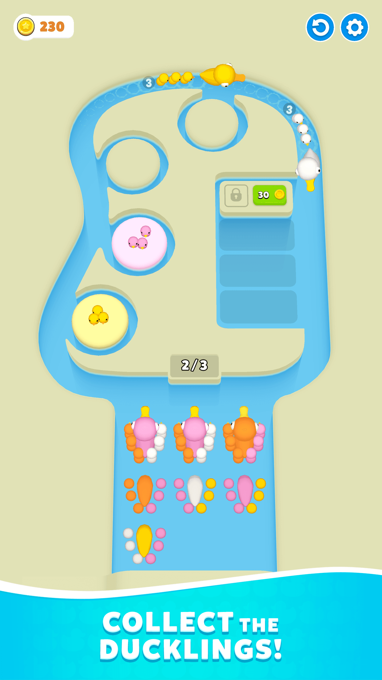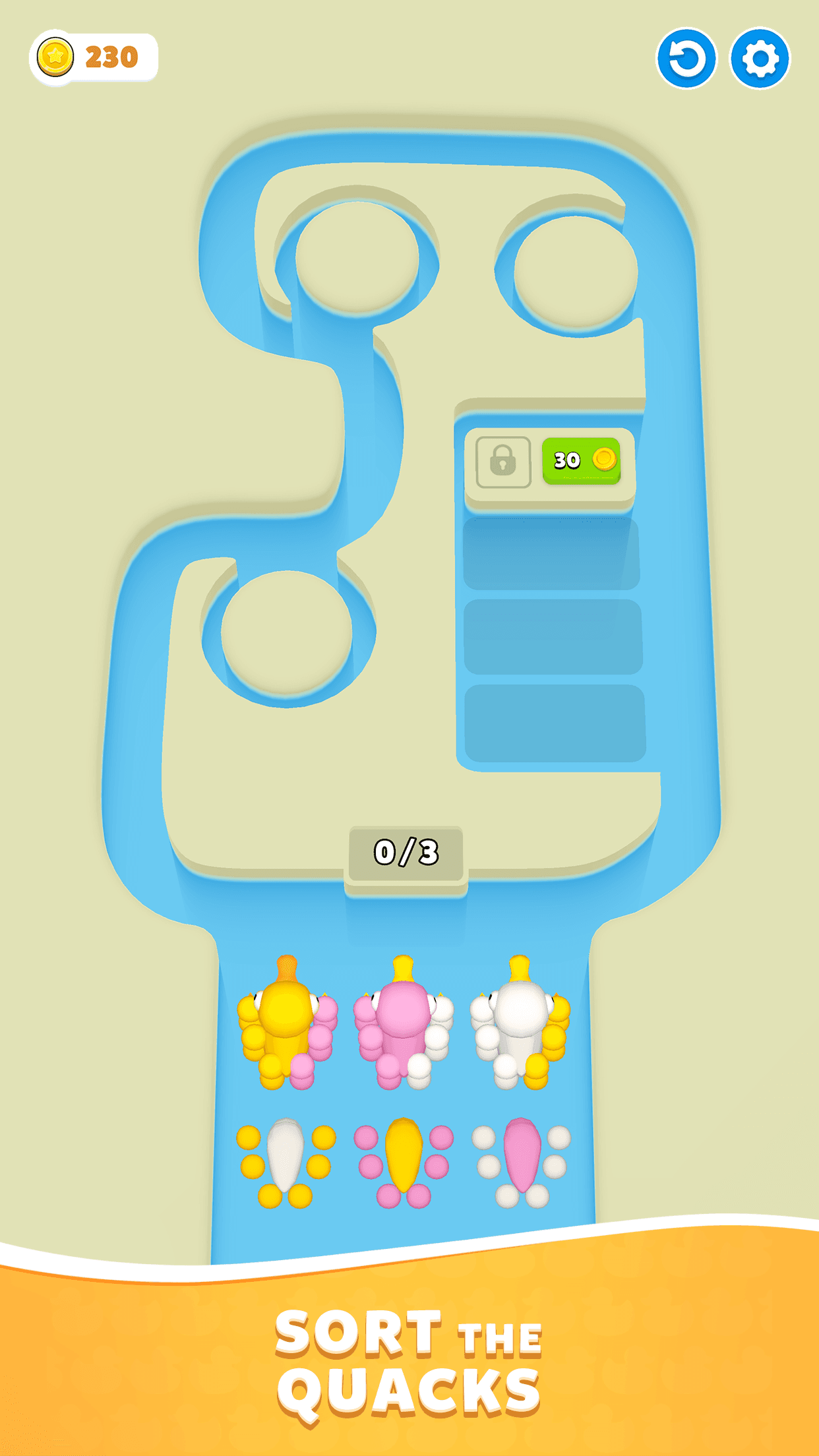 Dive into Ducky Jam 3D, a fun and strategic puzzle game where you sort ducklings with their mamas! Clear the lanes and enjoy satisfying auto-sorting mechanics as you tap, match, and watch ducks dive away!
