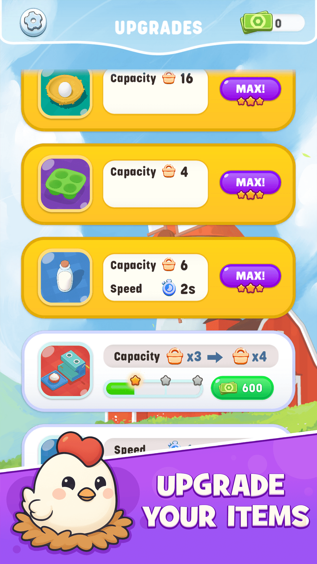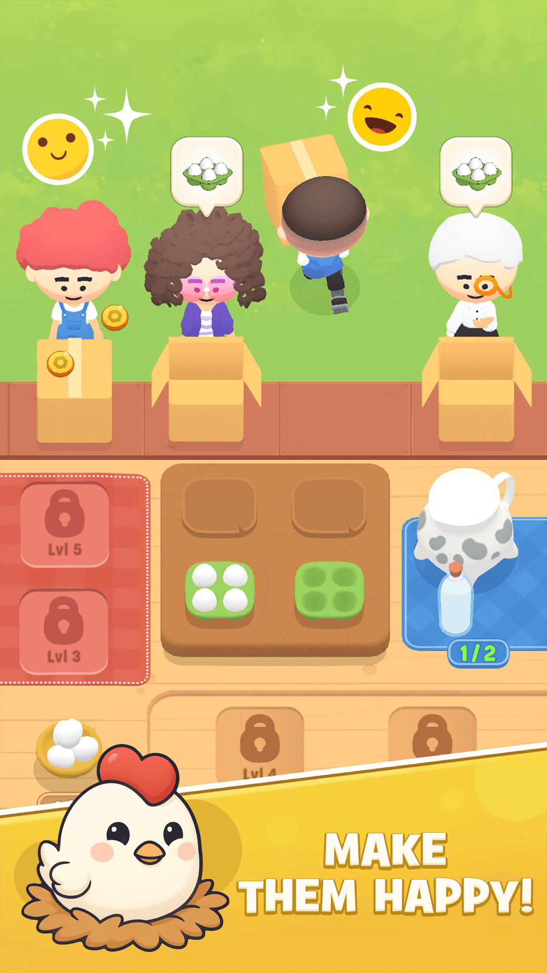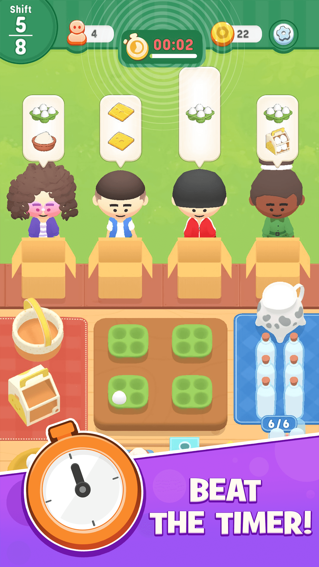 Connect gears, automate production, and pack farm-fresh items for quirky customers in this satisfying strategy game!